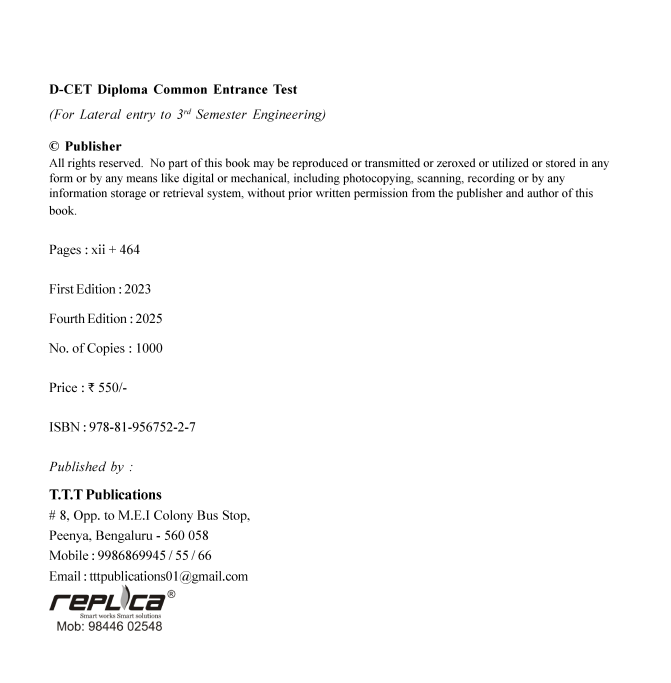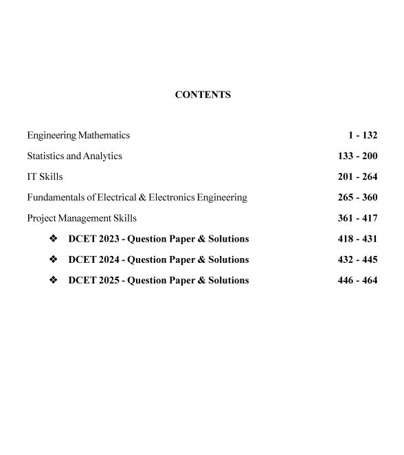 DCET-26 (C-20 Syllabus All 5 subjects) book. In this book, the author uses plain and simple language to explain fundamentals of the all 5 subjects syllabus. All the syllabus covered perfectly and MCQ questions are given. Complete topic wise concepts covered and for mathematics subjects, previous year papers also solved from 2013-2025 and key answers provided.